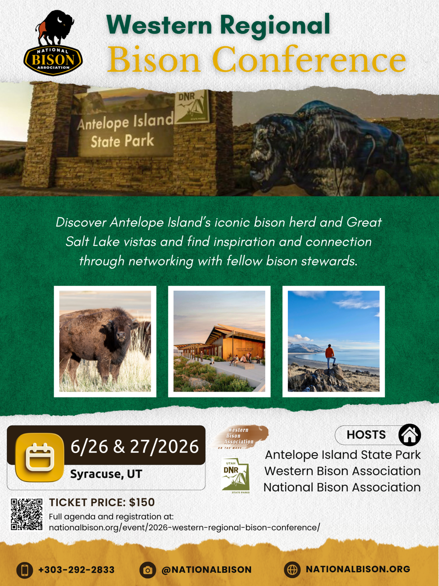 Discover Antelope Island’s iconic bison herd and Great Salt Lake vistas and find inspiration and connection through networking with fellow bison stewards.