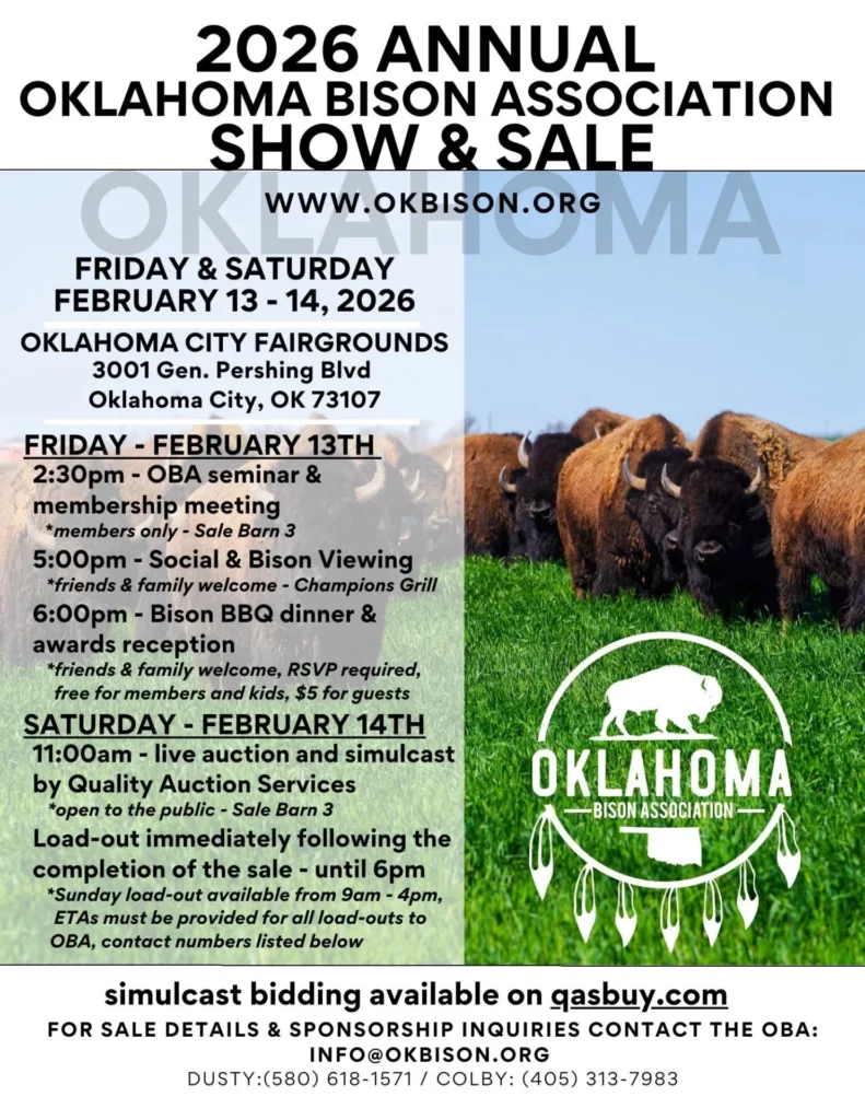 Join the Oklahoma Bison Association for their 2026 show & sale in Oklahoma City.